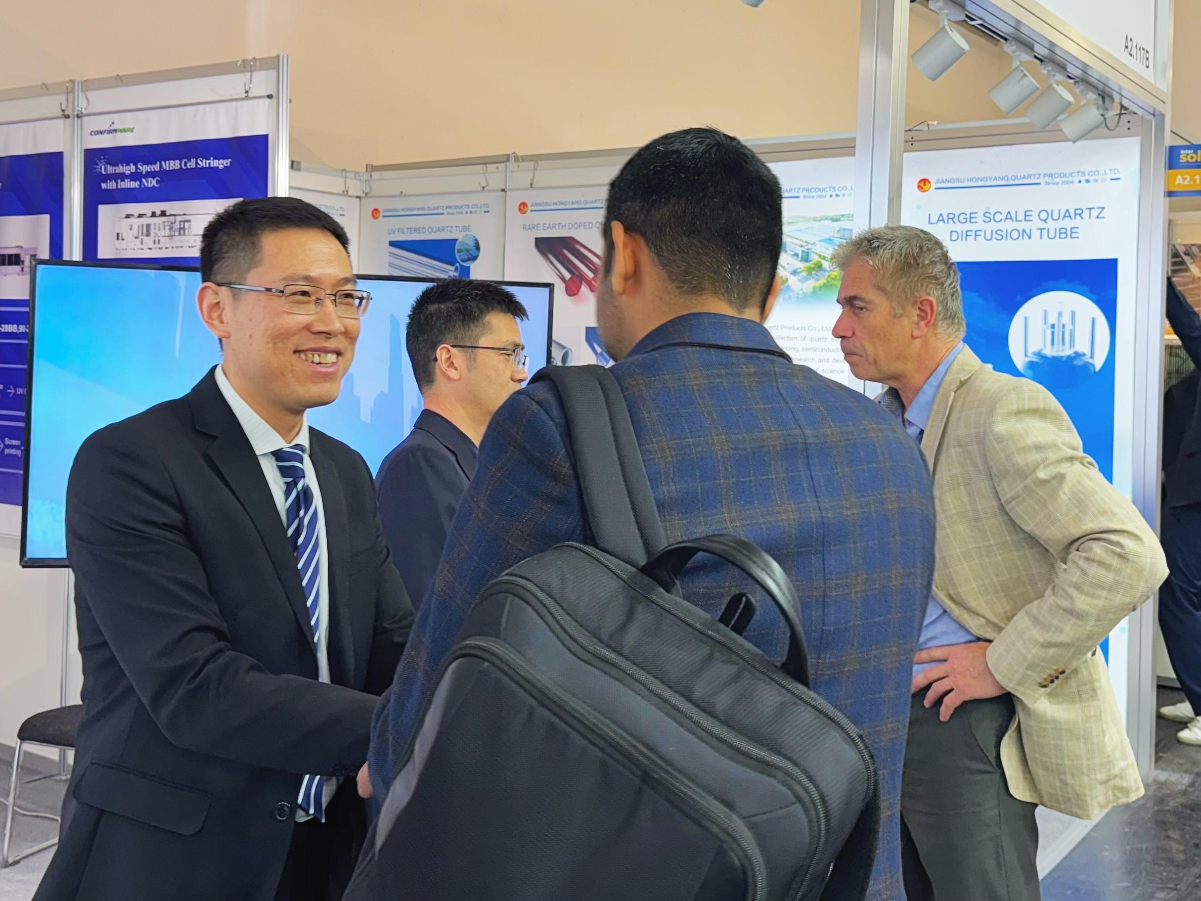 5月7日,备受瞩目的Intersolar Europe 2025在德国慕尼黑拉开帷幕。作为全球新能源行业的标杆盛会,本届展会汇聚近3000+家行业领先企业,共同展示光伏产业链的最新技术和成果。欧亿体育科技携其领先的光伏组件智能生产解决方案,在 A2.117展位精彩亮相,与全球合作伙伴共同探讨新形势下的能源发展机遇。